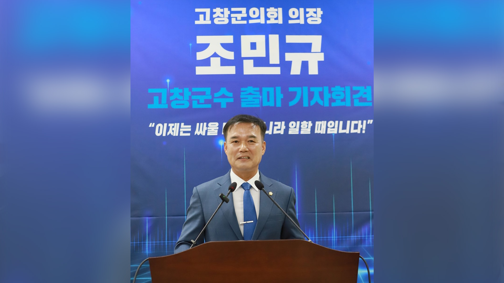 고창군의회 조민규 의장이 오늘(21일) 기자회견을 열고 "갈등과 반목으로 찢긴 고창의 현실을 더 이상 외면할 수 없다"며 고창군수 출마를 공식 선언했습니다.