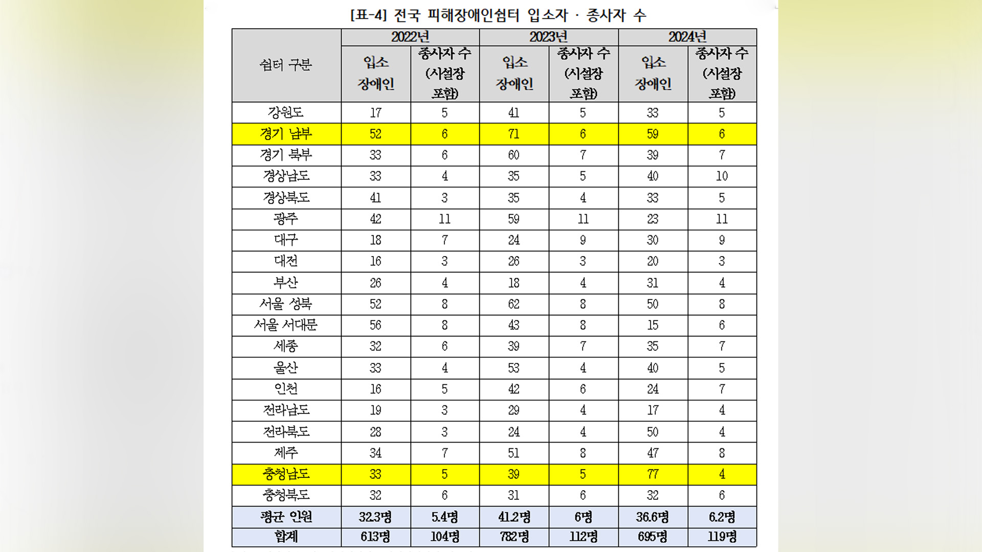 피해 장애인 보호 시설 인력 지역별 편차.. 전북은 서울의 절반 수준