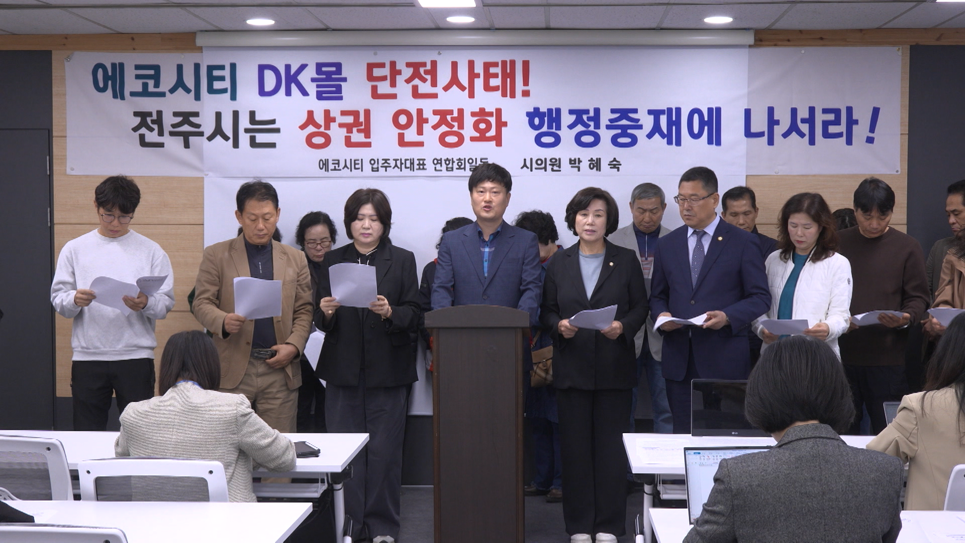 에코시티입주자대표연합회는 오늘(23일) 전주시청에서 기자회견을 열고, "이마트 에코시티점을 비롯한 상가 전체가 돌연 휴업에 들어가면서 주민들의 생활 불편은 물론 상권 붕괴 위기에 놓여있다"며, "이번 사태는 민간의 문제가 아닌 시민들의 생활권과 지역 경제가 직격탄을 맞은 공공적 사안"이라고 밝혔습니다.