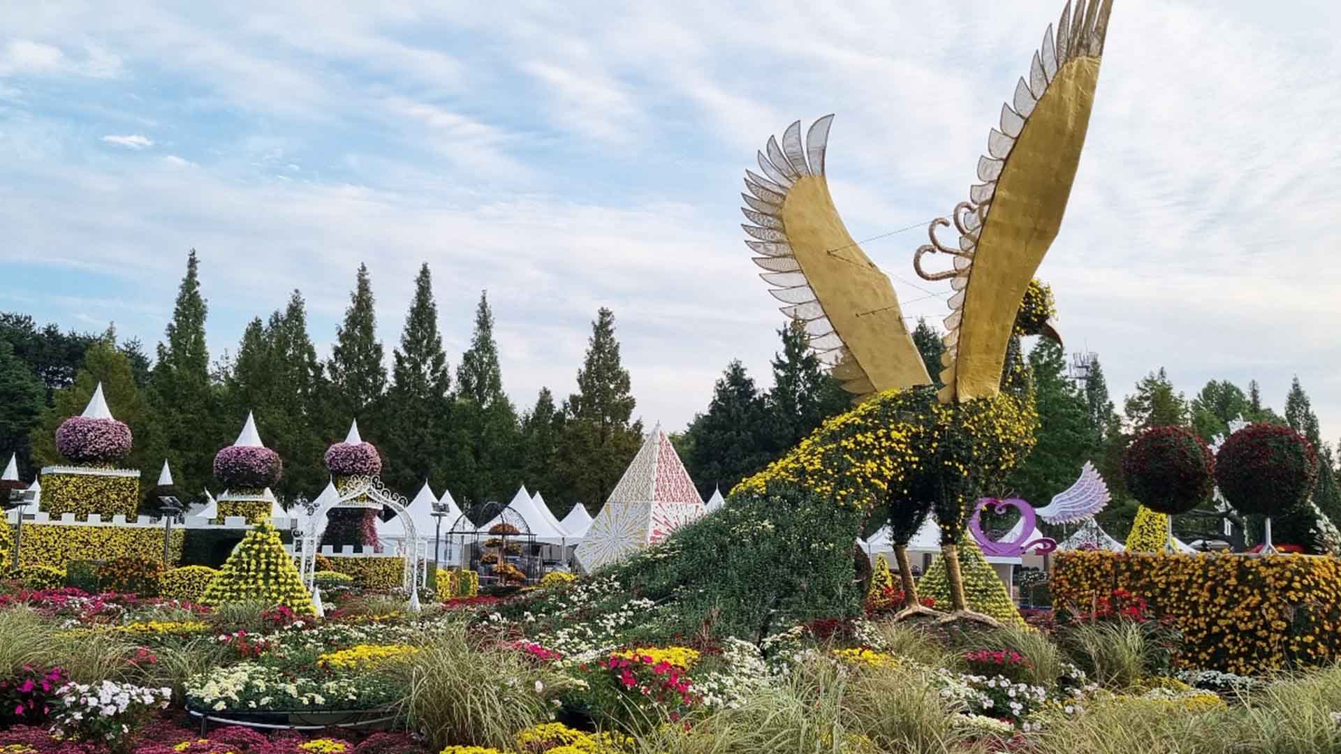다음 달 2일까지 열리는 국화축제는 '익산백제, 국화로 꽃피우다'를 주제로 익산중앙체육공원과 신흥공원 일대에서 8m 높이의 대형 봉황 조형물 등 1천여 점의 국화 조형물을 비롯해 6만 여점의 국화가 전시됩니다.