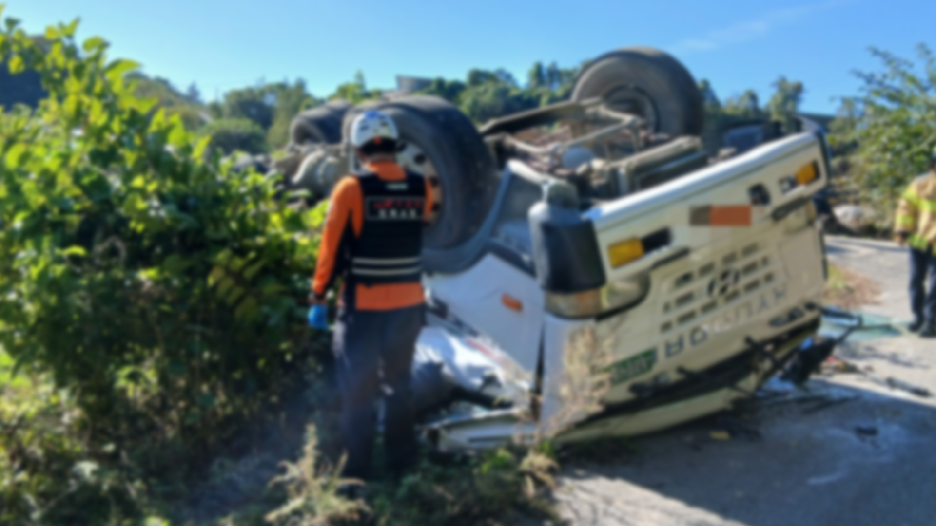 어제(27일) 오전 9시 40분쯤 진안군 안천면의 한 농로 내리막길에서 후진 중이던 레미콘 차량이 전복돼 70대 운전자가 가슴과 골반 등을 크게 다쳤습니다.