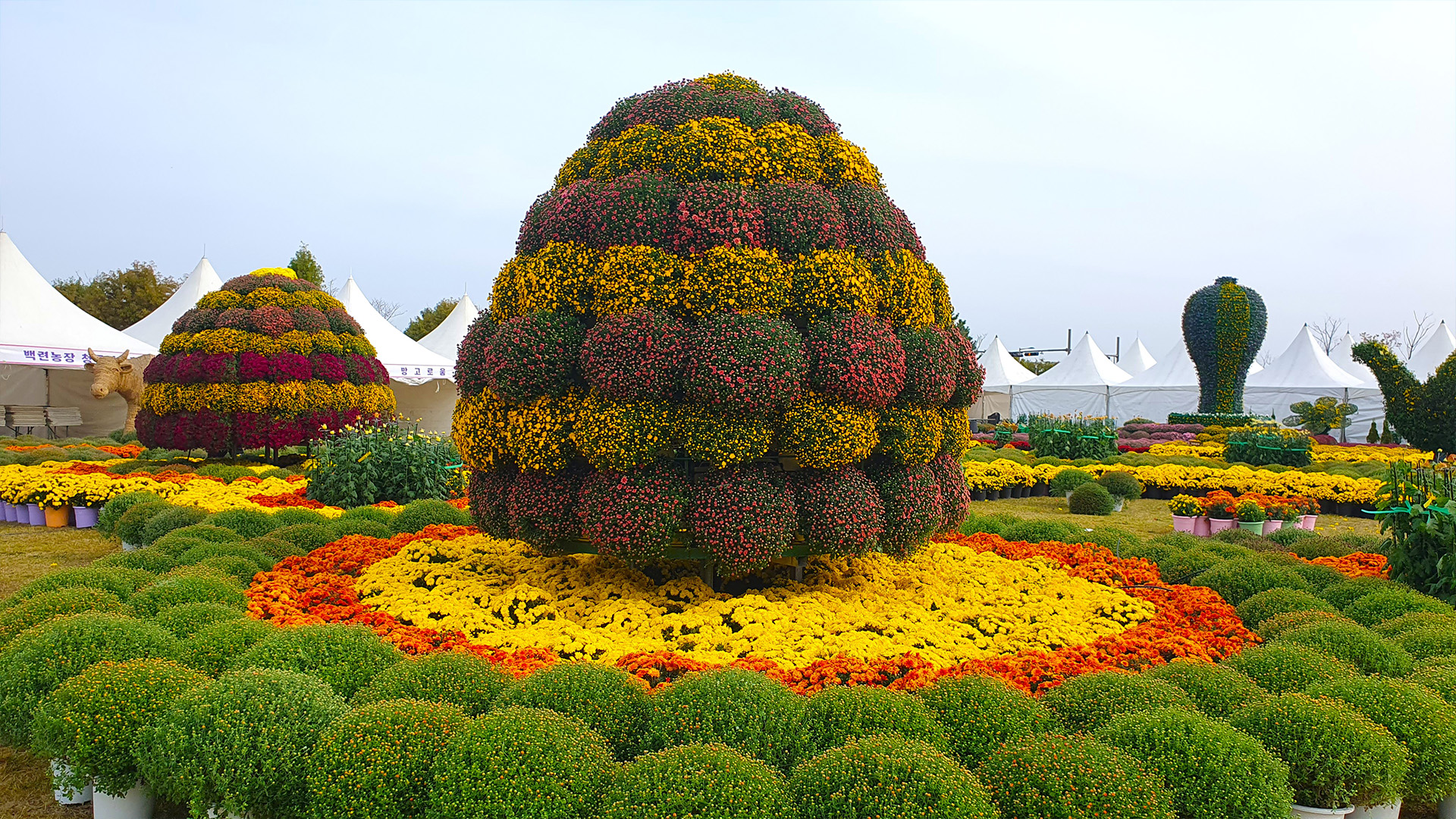 올해로 15회를 맞는 전시회에는 '깊어가는 가을, 국화의 향연'을 주제로 약 2만여 본의 국화 작품이 전시되고, 국화분재와 조형작품, 팝페라 공연 등 다채로운 볼거리가 마련됐습니다.