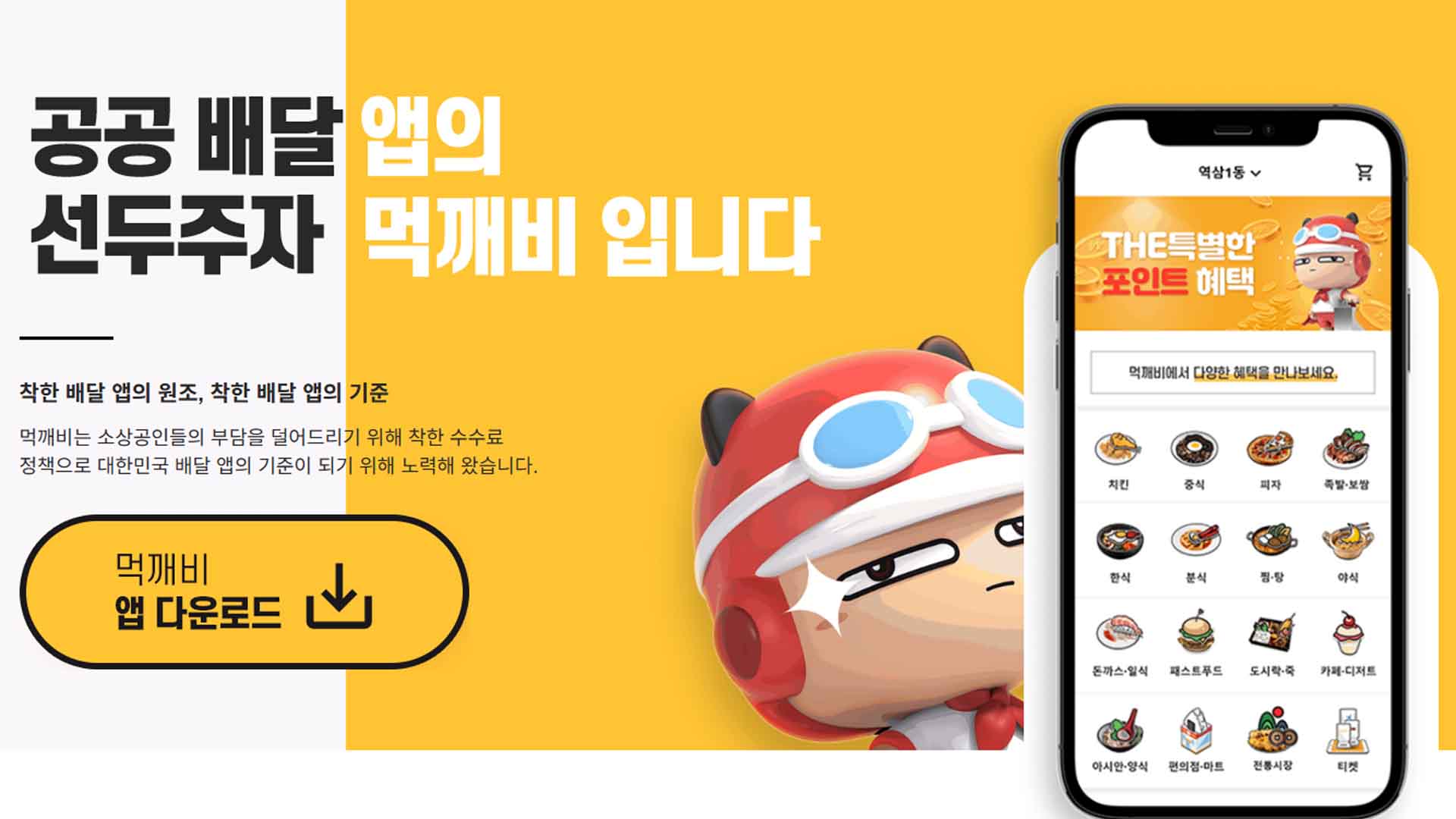 '먹깨비' 앱는 중개 수수료 1.5%로 이용할 수 있고, 입점비과 광고비, 월 사용료가 모두 무료입니다.