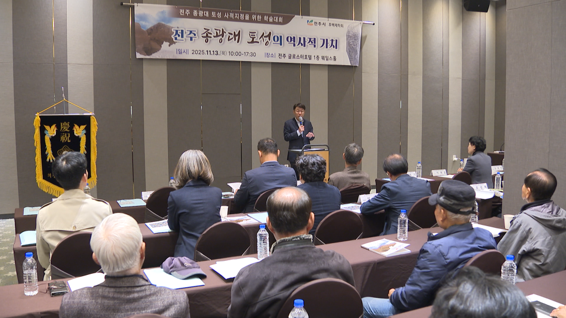 전주시와 후백제학회는 오늘(13일) 전주 글로스터 호텔에서 종광대 토성의 발굴 성과와 역사적 가치를 조명하기 위한 학술대회를 개최하고, 사적 지정을 추진하는 방안을 논의했습니다.