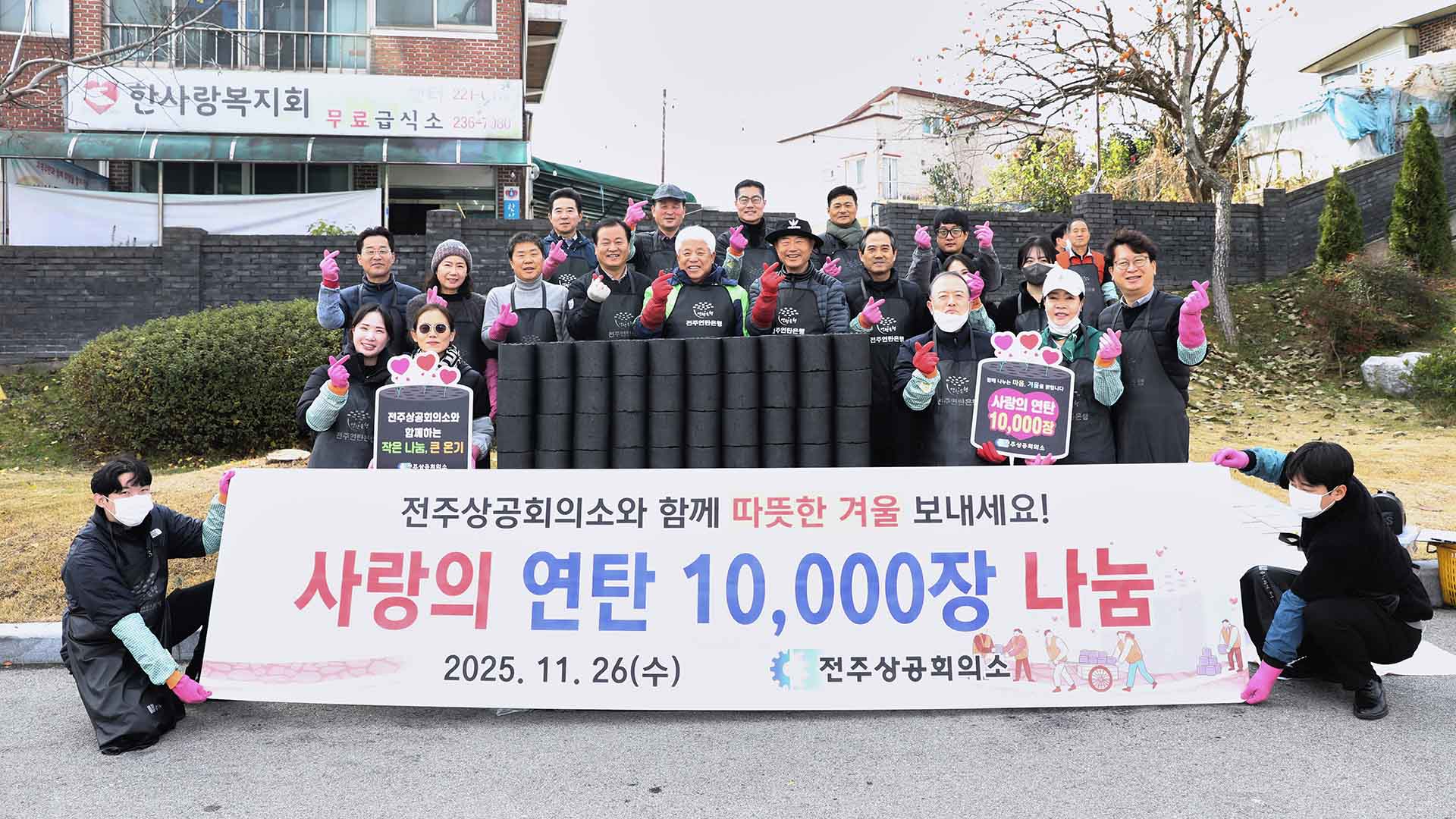 전주상공회의소는 오늘(26일) 임직원 30여 명이 참여한 가운데 사회복지시설인 ‘전주한사랑복지회’를 찾아 어려운 이웃들이 훈훈한 겨울을 날 수 있도록 연탄을 전달했습니다.