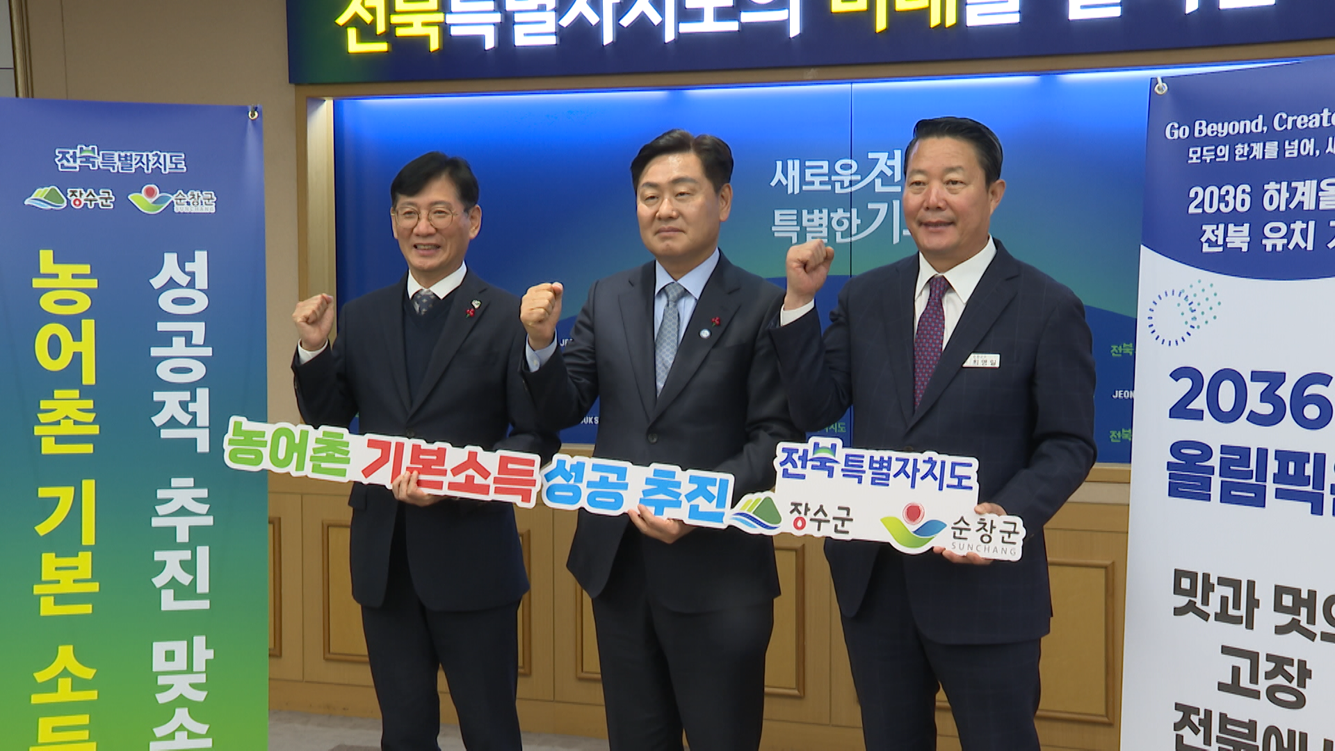 전북자치도가 농어촌 기본소득 시범사업지로 선정된 순창군, 장수군과 업무협약을 맺었습니다.