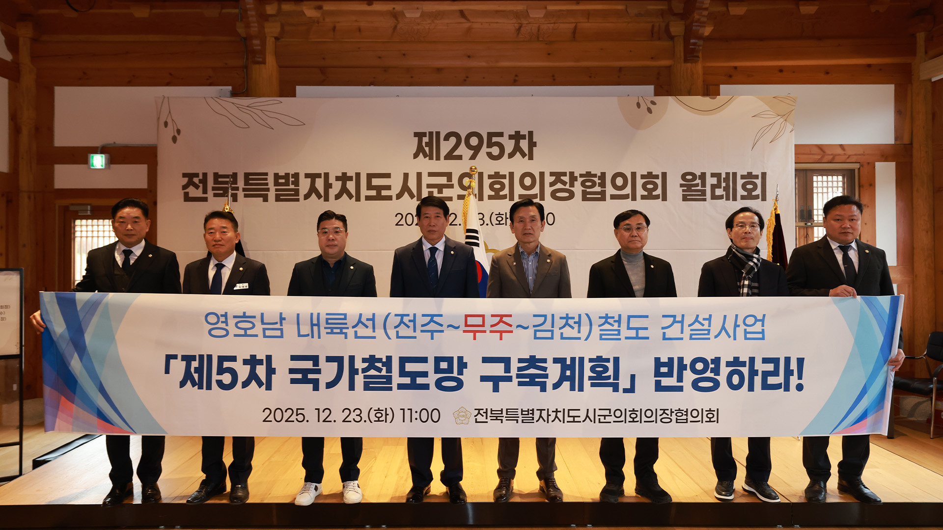 전북특별자치도 시군의회의장협의회는 오늘(23일) 오광석 무주군의회 의장이 제안한 '영호남 내륙선 철도 건설사업 제5차 국가철도망 계획 반영 촉구 건의안'을 만장일치로 채택했습니다.