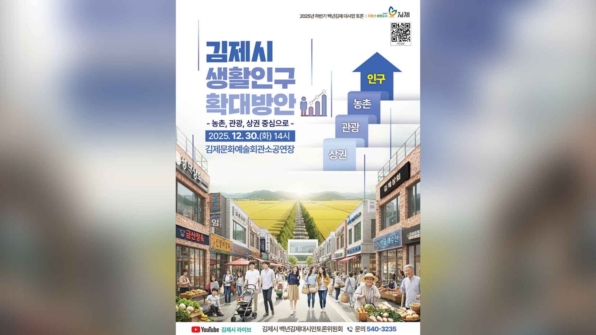 김제시는 오는 30일 오후 2시 김제예술회관 소공연장에서 '농촌, 관광, 상권을 중심으로 한 김제시 생활인구 확대 방안'을 주제로 시민 토론회를 개최합니다.