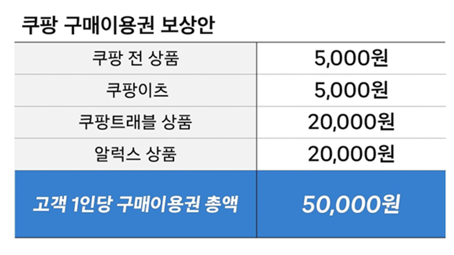 쿠팡은 내년 1월 15일부터 쿠팡 와우·일반·탈퇴 고객 등 3370만 명에게 1인당 5만 원 상당의 구매이용권을 순차적으로 지급할 방침이라고 오늘(29일) 밝혔습니다.