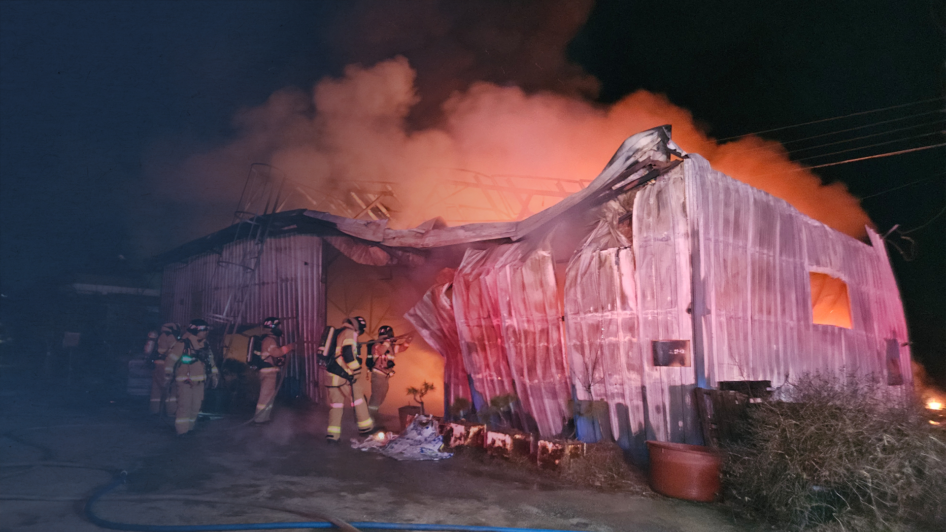어제(26) 저녁 7시 50분쯤 완주 이서면의 한 농자재 보관 창고에서 화재가 발생해 자체 진화를 시도하던 50대 남성이 다치고 2,500만 원 상당의 재산 피해가 발생했습니다.