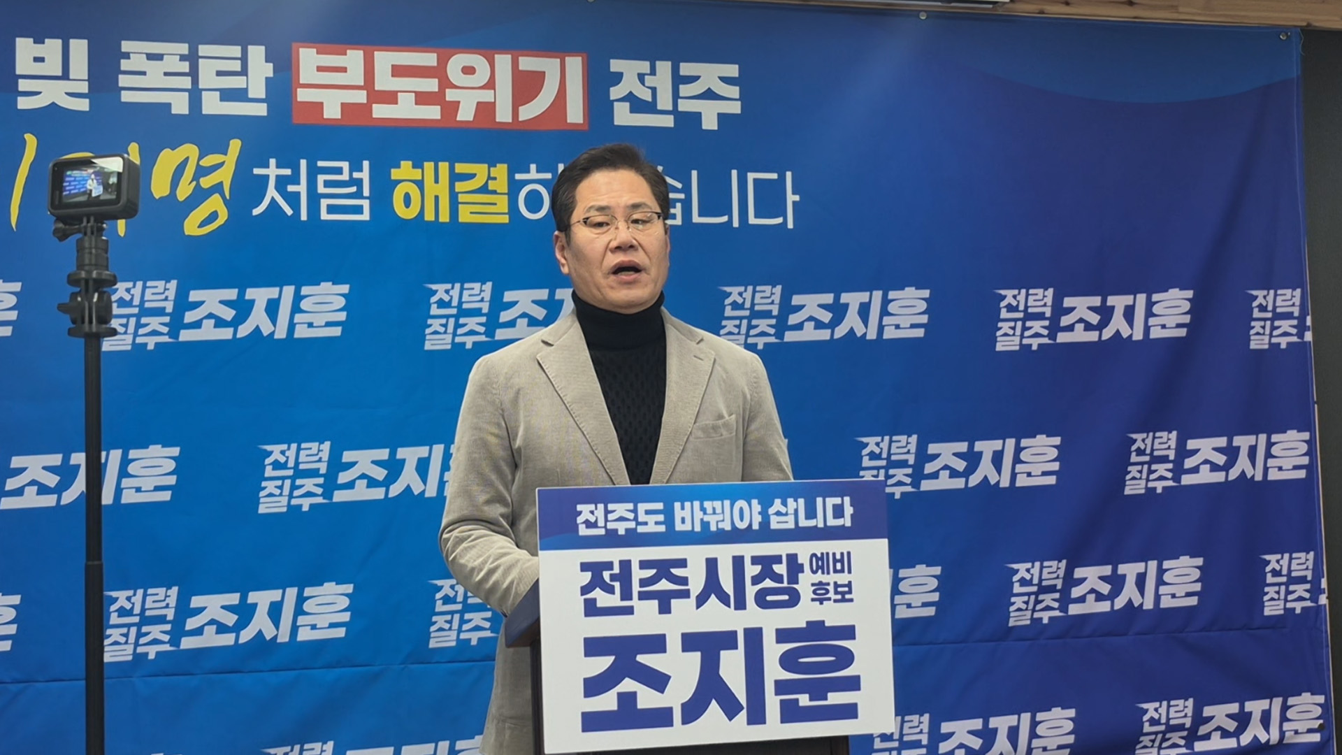 조지훈 전주시장 예비후보는 오늘(23일) 기자회견을 열고, 복원사업이 추진 중인 종광대 토지 보상금 1,095억 원과 탄소 국가산업단지 조성에 필요한 1,211억 원 등을 모두 반영할 경우, 현재 6천억 원대인 지방채가 1조 원을 초과할 수 있다고 주장했습니다.