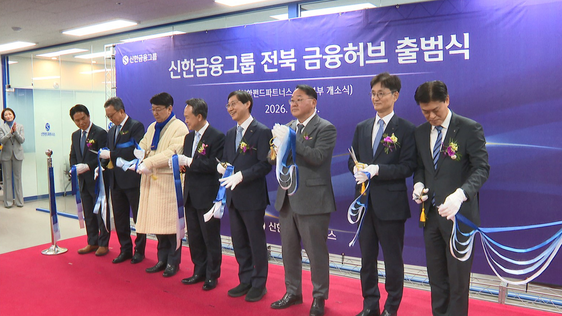 신한금융그룹은 오늘(24일) 전주 만성동에서 국민연금공단, 전북자치도와 신한금융그룹 전북 금융허브 출범식 및 신한펀드파트너스 전주본부 개소식을 열었습니다.