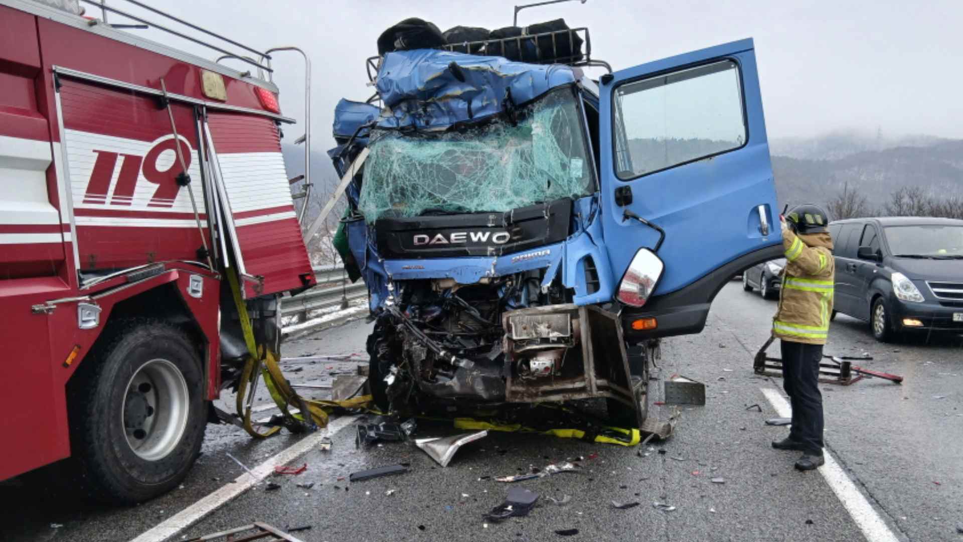 1.호남고속도로 연쇄 추돌.. 수습 중 소방차 덮친 트럭