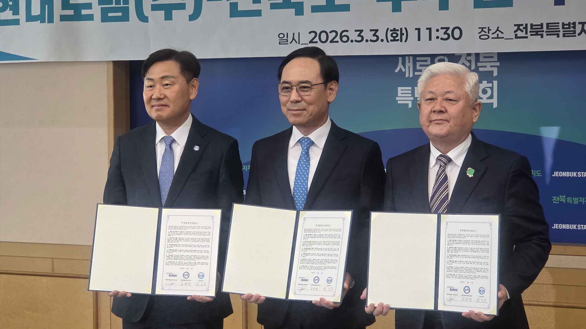 이용배 현대로템 대표이사는 오늘(3일) 전북자치도청을 찾아 전북도, 무주군과 업무협약을 맺고 오는 34년까지 3,000억 원을 단계적으로 투자해 무주에 유도무기와 우주발사체 엔진 핵심기지를 구축하기로 했습니다.