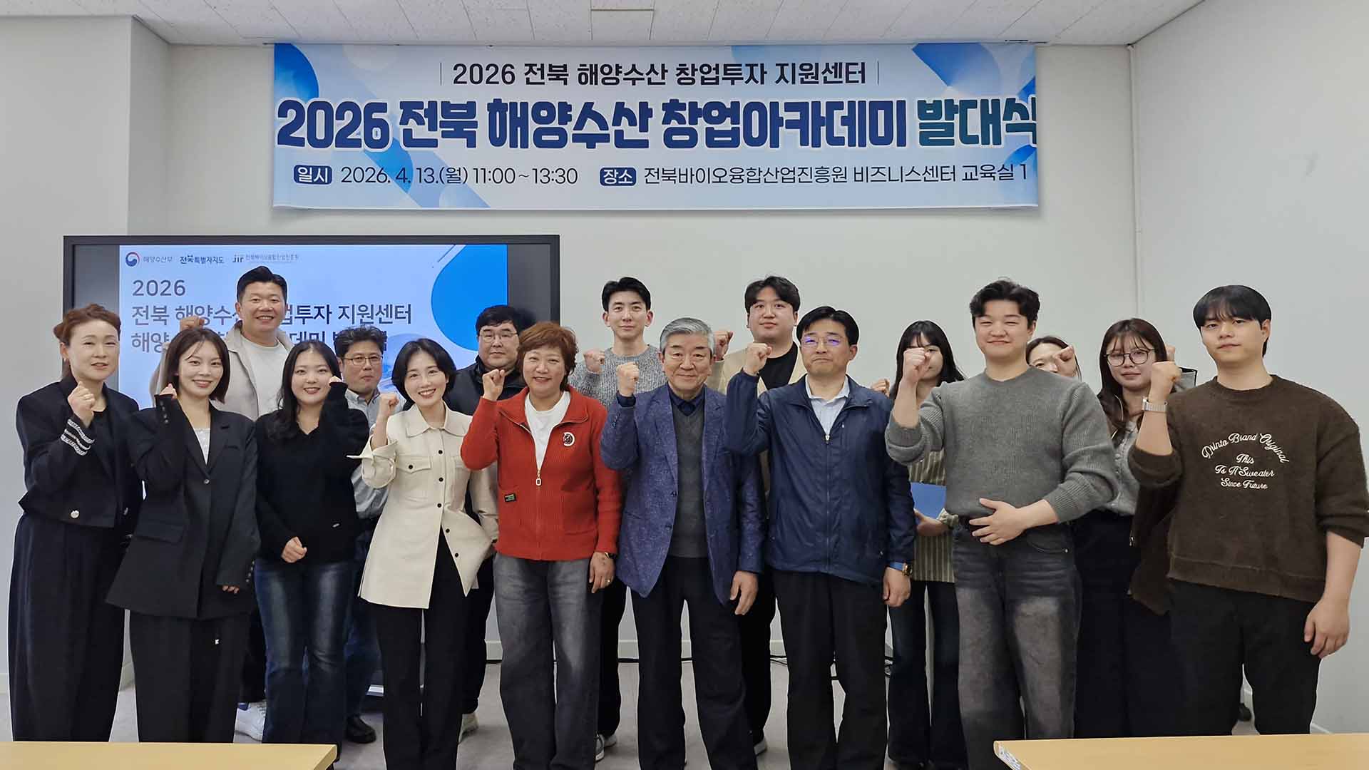 전북바이오융합산업진흥원은 오늘(13일) ‘2026년 전북 해양수산 창업아카데미 발대식’을 개최하고 선정된 12개 팀을 대상으로 8주간 이론교육과 그룹·개별 멘토링, 현장실습, 성과발표회 등을 진행할 예정입니다.