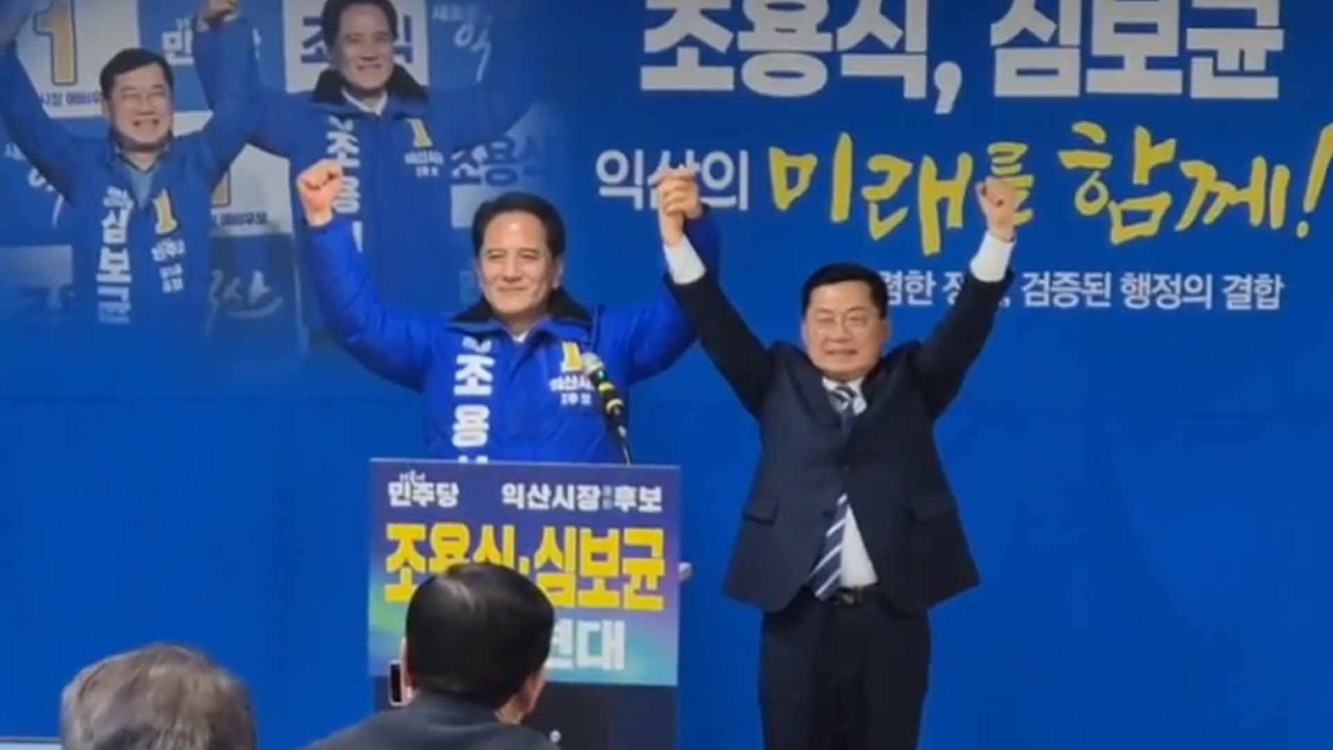 민주당 익산시장 후보 예비 경선에서 탈락한 심보균 후보가 조용식 예비 후보 지지를 선언했습니다.