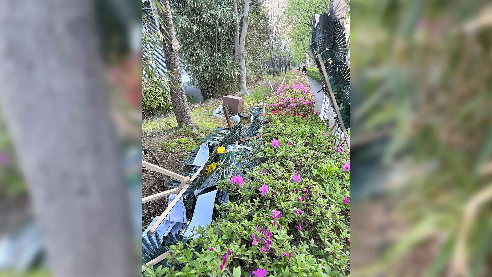 오늘(16일) 오전 전북도의회 앞 화단에는 민주당 지도부를 규탄하고, 김 지사의 무소속 출마를 응원하는 화환 8개가 놓였지만, 오후 들어 화환 일부가 넘어진 채 발견됐습니다.