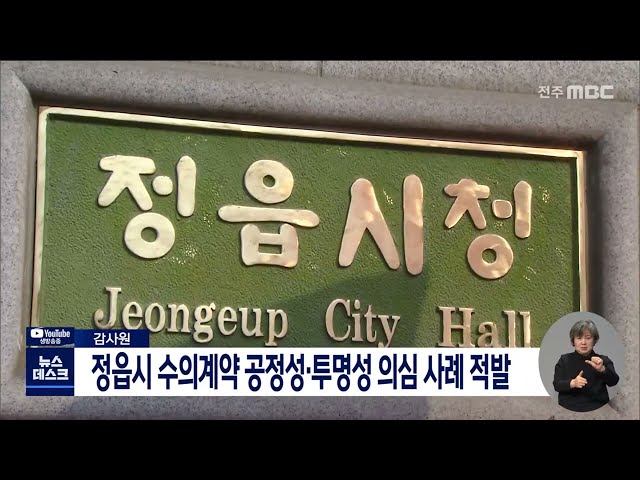 정읍시가 수의계약으로 추진한 일부 공사가절차를 무시한 채 이뤄진 것으로 조사됐습니다.감사원은정읍시가 재작년부터 포장공사 등 설계용역을 경쟁입찰을 통하지 않고 일명'쪼개기식 발주'를 한 결과5개 업체와 46건...
