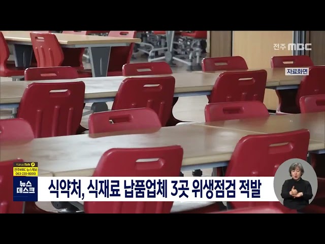 도내 학교 급식소와 식재료 납품업체가정부합동 위생점검에 적발됐습니다.식품의약품안전처가 식중독 예방을 위해최근 석 달여간 유치원.학교 급식시설과식재료 납품업체 등 7천여 곳을 조사한 결과, 도내에서는 고창 모...