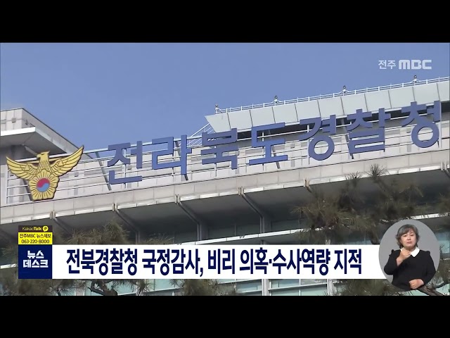 전북경찰의 수사역량과 경찰관들의 비리 문제가 국정감사 지적사항으로 제기됐습니다.국회에서 열린 행정안전위원회의전북경찰청 국정감사에서 질의에 나선의원들은 올 초 드러난 전북경찰청 간부의뇌물비리 사건과 마스크 사...
