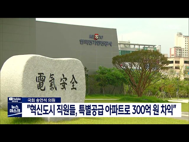 혁신도시 이전기관 직원들을 위한특별공급 아파트가 사실상 투기 수단으로활용된다는 비판이 제기됐습니다.국회 송언석 의원의국토교통부 국정감사 자료에 따르면한국전기안전공사 등 도내 혁신도시로이전한 공공기관 직원들이...