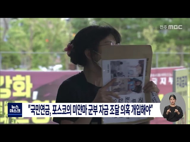 미얀마 민주주의 지지 시민단체모임 등은오늘 국민연금 기금운용본부 앞에서 기자회견을 열고, 포스코의 미얀마 가스 사업 수익이군부로 흘러든다는 의혹에도 국민연금이방관하는 것은 평소 강조하던 책임 투자와거리가 멀...