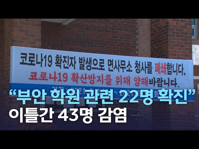 ◀ANC▶부안의 한 영어학원 수강생들의 집단감염으로지역사회가 불안에 떨고 있습니다.학원생과 학교 친구, 가족으로 번져 지금까지22명이 확진되면서 면사무소가 폐쇄되고군청도 일부 업무가 중단되기도 했습니다.전주...