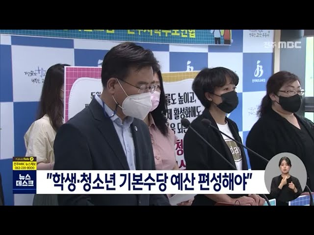 학생과 청소년에게 기본 수당을지급하자는 제안이 나왔습니다.전북미래교육연구소와 전주시학부모연합 등은 기자회견을 열고, 도내 학생과 학교 밖 청소년 20만 명의 보편적 복지 실현을 위해기본 수당 지급이 필요하다고...