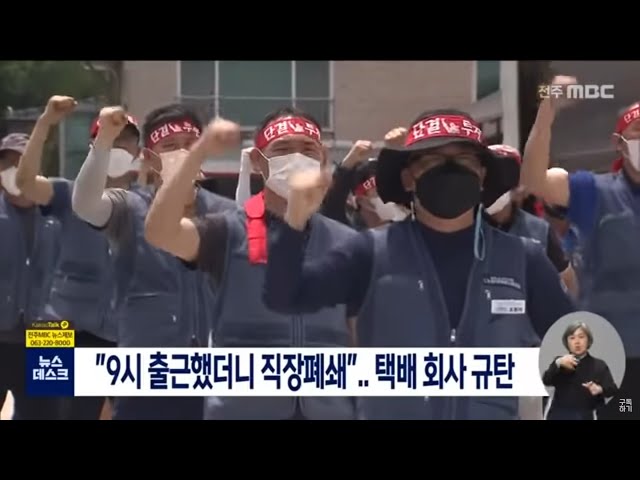 분류 작업 중단을 촉구하며 택배 노동자들이투장에 나서자 택배사가 직장폐쇄로 맞서노조가 반발하고 있습니다.전국택배노조 전북지부는 오늘(11)로젠택배 전주지점 앞에서 집회를 열고분류 작업을 거부하고 '9시 출근'...