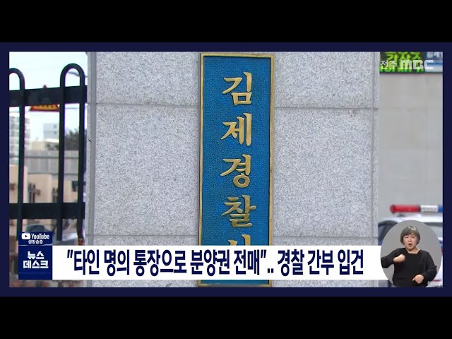 타인 명의의 통장으로 아파트 분양권을 되판경찰 간부가 경찰조사를 받고 있습니다.김제경찰서는 주택법 위반혐의로진안경찰서 소속 A 경감을 입건했습니다.A 경감은 지난 2017년,지인에게 받은 주택 청약 통장으로아...