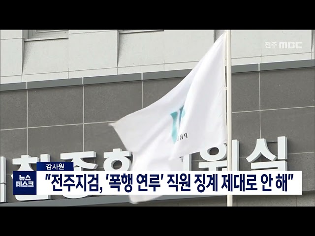 전주지방검찰청이 폭행사건에 연루된 직원을절차대로 징계하지 않은 것으로 드러났습니다.감사원은지난 2016년 전주지검 직원 A씨가음주 폭행 사건으로 입건돼징계위에 회부됐어야 했는데,'근무태도가 성실하다'는 이유로...