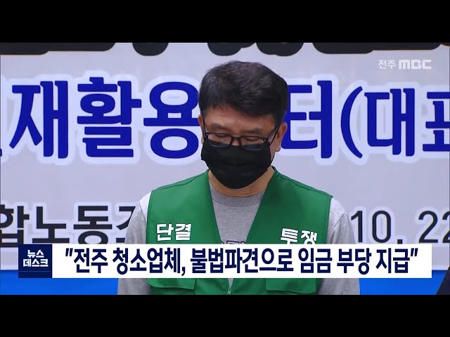 전주의 한 청소 용역업체가불법 파견을 통해 임금을 부당지급 받았다는의혹이 제기됐습니다.전국민주연합노동조합은 대형폐기물 수거업체가직원 8명을 별도 법인이 운영하는재활용센터에 불법 파견해 지난 4년 동안10억여 ...