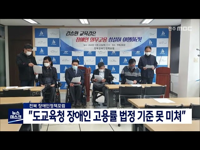 전라북도 장애인 정책포럼은 기자회견을 열고, 도교육청이 법에 명시된 장애인 의무고용률을 지키지 않아 낸 부담금이 지난 3년 동안 21억 원에 이른다고 지적했습니다.이들은 장애인 의무 고용 제도가 도입된 지 1...