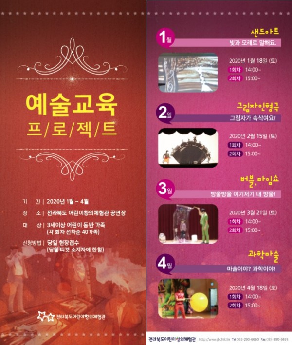 2020년 1~4월 예술교육 프로젝트를 기획하였습니다. 도민여러분의 많은 관심 부탁드립니다.