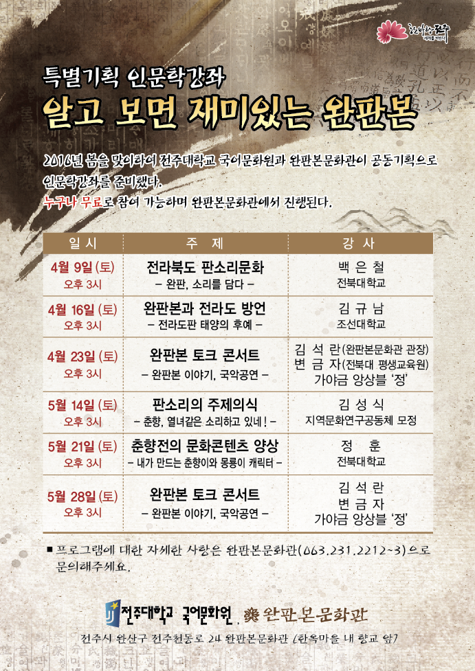 완판본문화관 특별기획 인문학 강좌