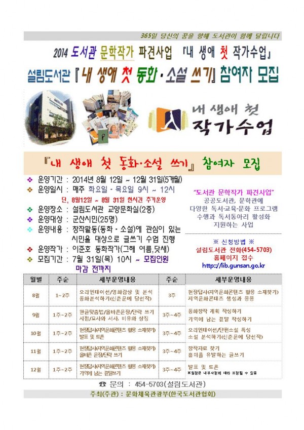 5. 운영내용 : 창작활동(동화ㆍ소설)에 관심이 있는 시민을 대상으로 글쓰기 수업