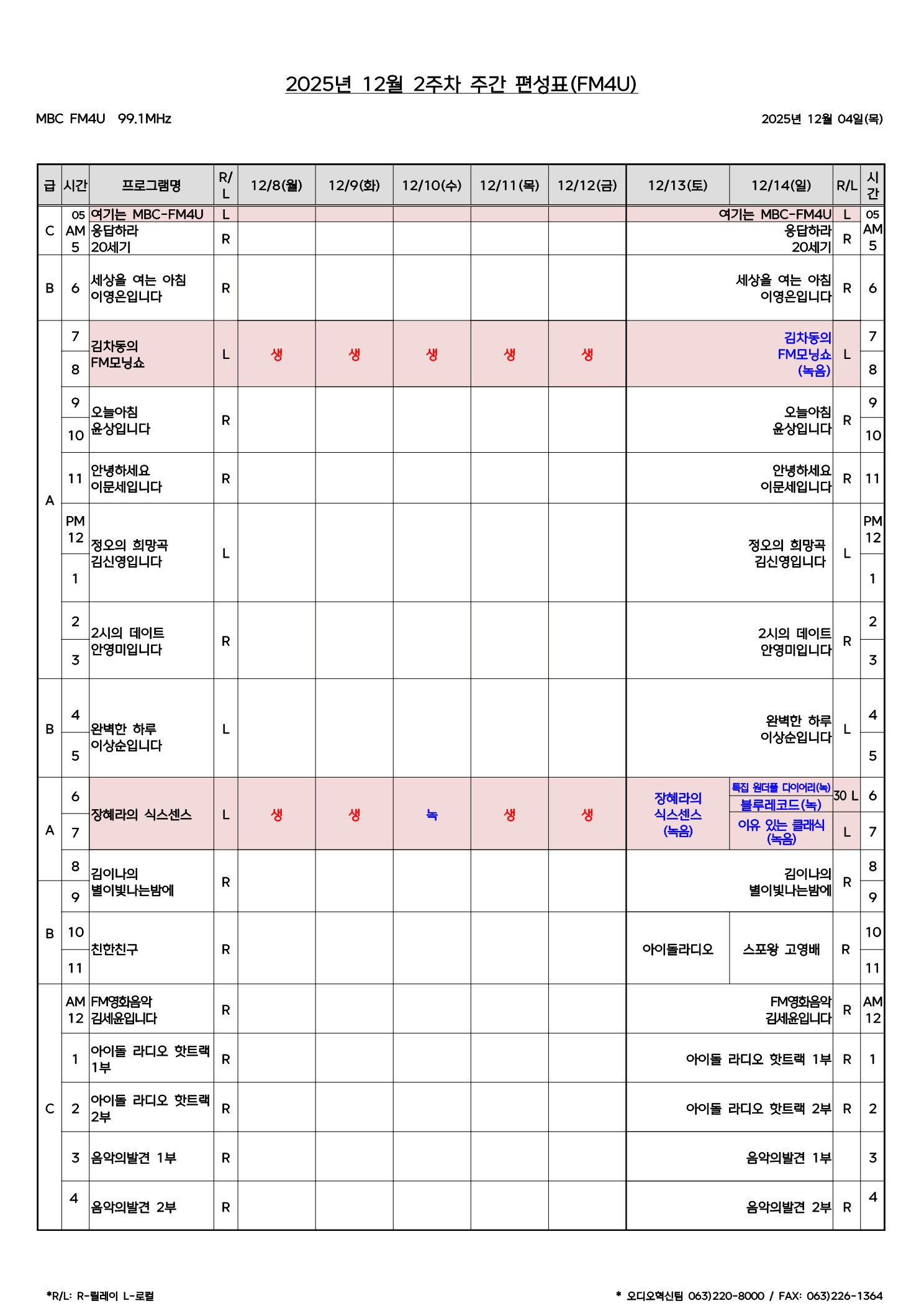 FM4U 편성표